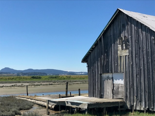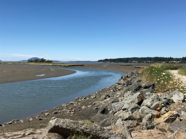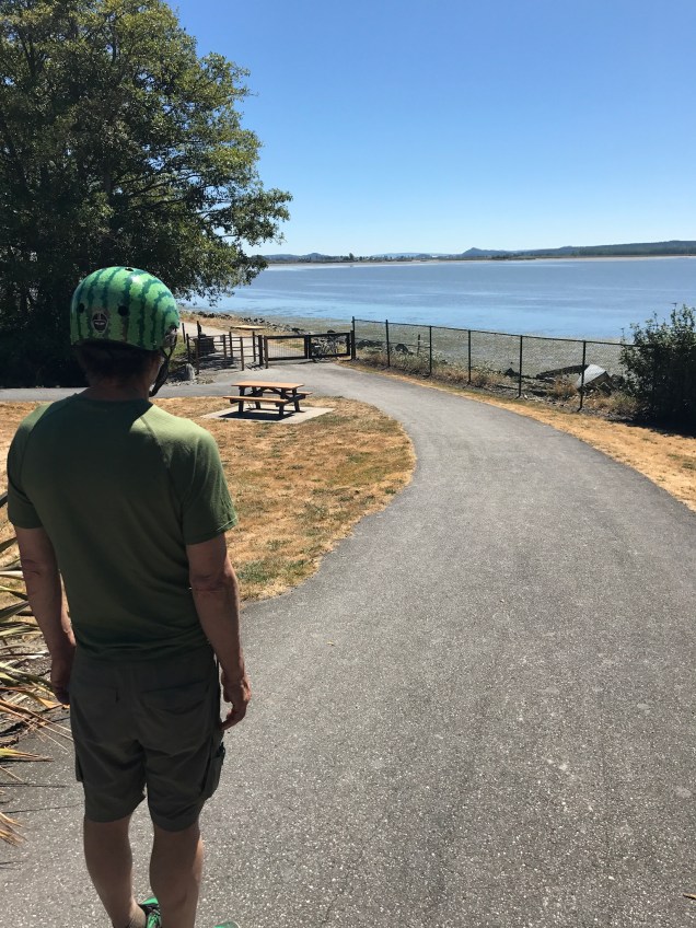 We set out on the last Saturday in July to attend the Samish Island Arts and Craft Show. We took our bikes, thinking we could explore this island on bike after our time at the show. Truth to tell, we had never been on Samish Island and weren’t exactly sure how to get there. From Bellingham, we drove south on I-5 to the Bow-Edison exit and followed the signs west to Edison, an artsy town that deserves a stop. Once through Edison, we followed the small green signs to Samish Island and found the art show. We thought we could explore the island on our bikes after the show but found that the narrow roads had no shoulders for bikes so decided to drive the short way down to Bayview, Washington and ride on this car-free picturesqueΒ trail.