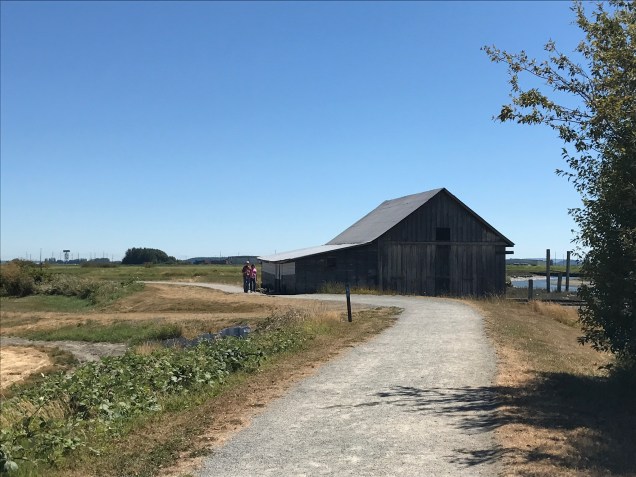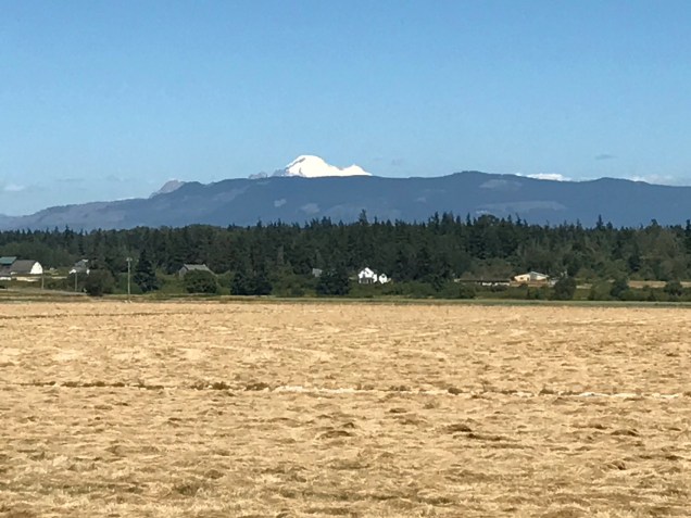Since the amount of time I am allowed to walk until my foot completely heals is about 20 minutes per day, we rode this walk on our bikes. I am allowed to ride freely and have happily rediscovered the joy of riding my bike! Aaron and I have walked this 4 1/2 mile round trip walk at least two times before. It is a lovely walk with wide open views of Padilla Bay, the farm land around Bayview, Washington, and even Mount Baker.